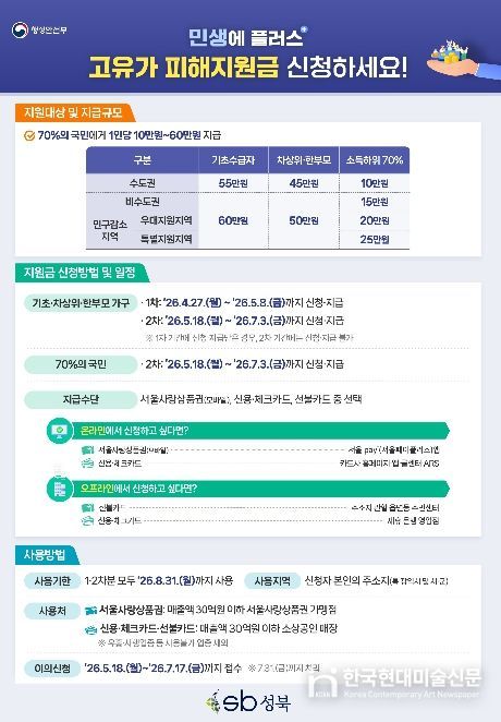 한국현대미술신문 배건 기자 | 서울 성북구가 고유가 피해지원금 신청을 오는 4월 27일부터 접수한다.