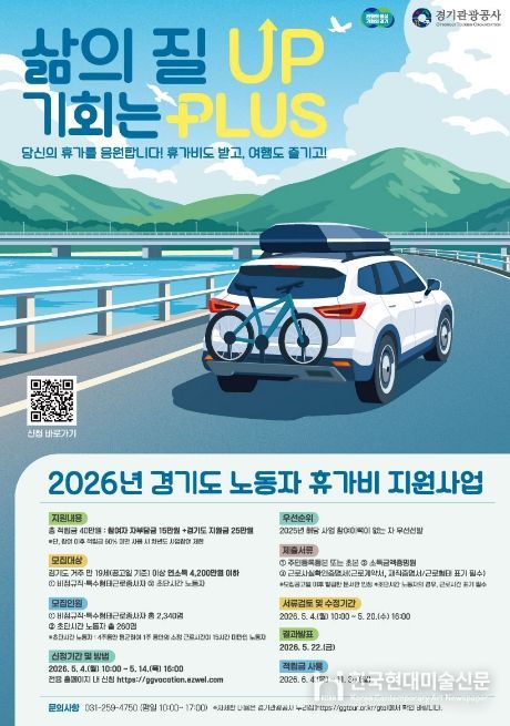 한국현대미술신문 배윤섭 기자 | 경기도가 경제적 부담으로 휴식을 포기했던 비정규직과 특수형태근로종사자에게 휴가비를 지원하는 ‘취약노동자 휴가비 지원사업’ 참여자를 5월 4일부터 14일까지 모집한다.