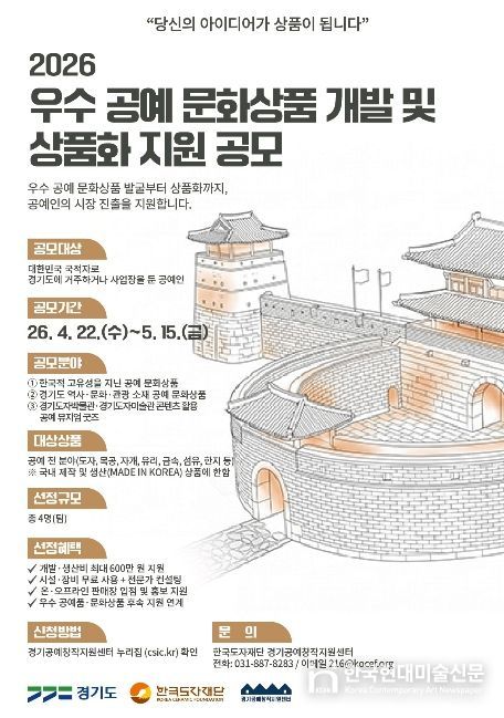 한국현대미술신문 배윤섭 기자 | 한국도자재단이 ‘2026 공예 문화상품 개발 및 상품화 지원 사업’을 본격 추진한다고 22일 밝혔다.