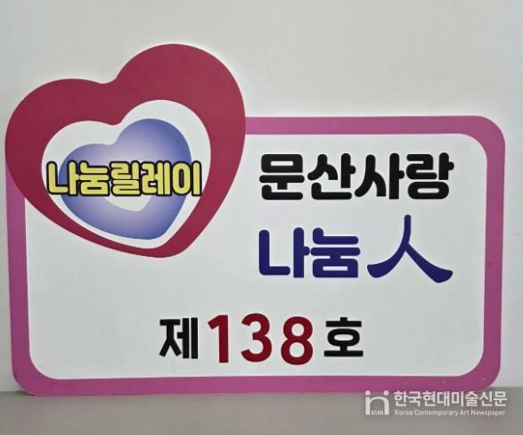 한국현대미술신문 신정은 기자 | 문산면 문산사랑후원회는 지난 20일 지역 내 어려운 이웃을 위해 100만 원을 기탁한 ㈜명문건설 나도운 대표를 ‘문산사랑나눔인’ 138호로 선정했다.