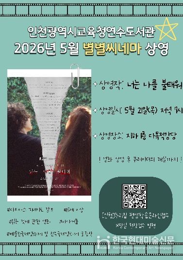 한국현대미술신문 박재남 기자 | 인천광역시교육청연수도서관은 5월의 다양성영화 '별별씨네마'로 마티아스 피녜이로 감독의 ‘너는 나를 불태워’를 상영한다.