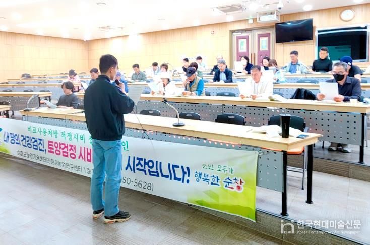 한국현대미술신문 기자 | 순창군은 지난 21일 친환경농업연구센터 2층 대강의실에서 농업․농촌혁신대 및 기초영농교육반 교육생 60여 명을 대상으로 ‘적정시비 실천 캠페인 및 토양관리 교육’을 실시했다.