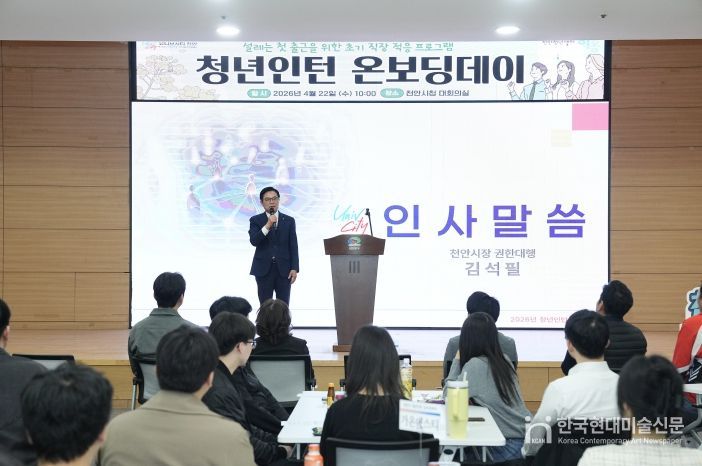 한국현대미술신문 신정은 기자 | 천안시는 22일 시청 대회의실에서 청년인턴의 안정적인 직장 적응을 지원하는 ‘청년인턴 온보딩데이’를 개최했다.