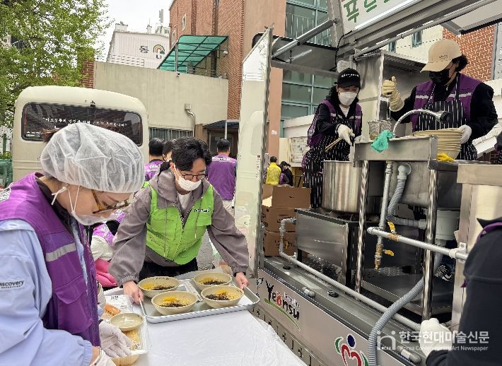 한국현대미술신문 박재남 기자 | 연수구자원봉사센터는 21일에 청학노인복지관에서 ‘푸드트럭 온기나눔 짜장차 무료급식’ 활동을 진행했다.
