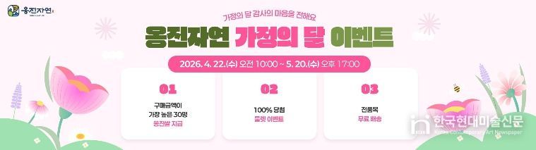 한국현대미술신문 박재남 기자 | 옹진군은 5월 가정의 달을 맞아 지역 특산물 온라인 판로 확대와 옹진자연몰 이용 활성화를 위해 ‘2026년 옹진자연 가정의 달 맞이 이벤트’를 오는 4월 22일부터 5월 20일까지 총 29일간 운영한다고 밝혔다.