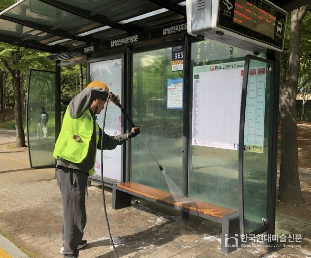 한국현대미술신문 배윤섭 기자 | 수원시 영통구는 지난 21일, 새봄을 맞아 대중교통 이용 환경 개선을 위한 버스승강장 환경정비를 시작했다.