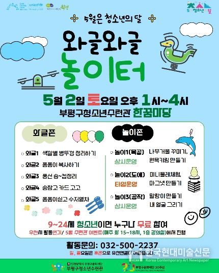 한국현대미술신문 박재남 기자 | 부평구청소년수련관은 오는 5월 2일 청소년 체험 행사 ‘와글와글 놀이터’를 운영한다고 밝혔다.