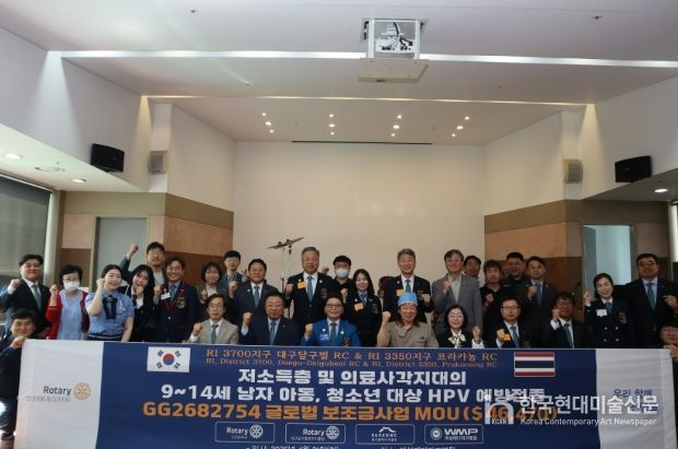 한국현대미술신문 정소영 기자 | 대구 수성구는 국제로타리 3700지구(대구달구벌로타리클럽), 여성메디파크병원과 지난 21일 저소득층 및 의료사각지대에 있는 남자 아동·청소년을 대상으로 ‘HPV(사람유두종바이러스) 예방접종 지원을 위한 업무협약’을 체결했다.