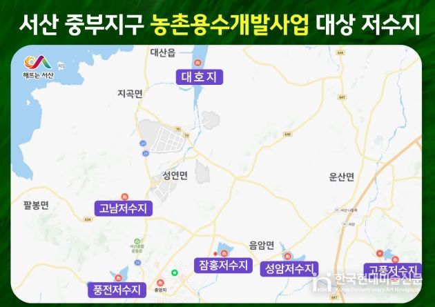 한국현대미술신문 신정은 기자 | 충남 서산시가 농촌 가뭄피해 예방과 농업용수 수급 불균형 해소를 위해 대호호와 저수량이 부족한 관내 5개 저수지를 잇는다.