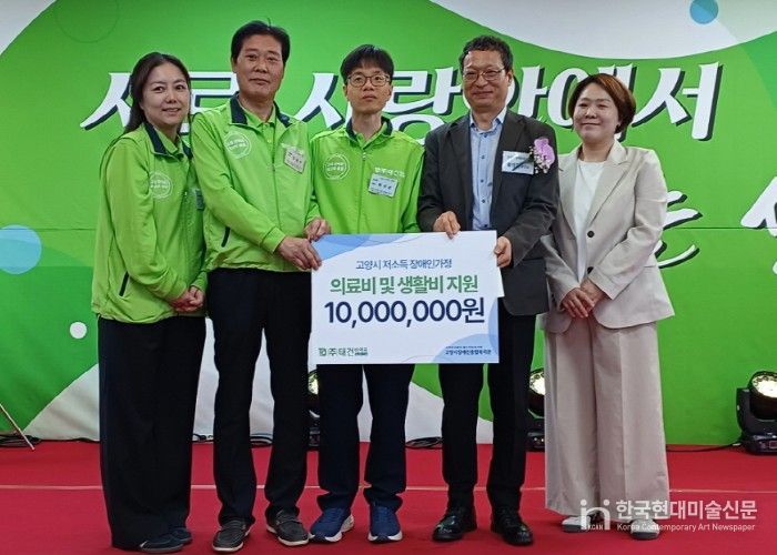 한국현대미술신문 배윤섭 기자 | 고양시장애인종합복지관은 지난 18일, ㈜태건비에프가 제37주년 창립기념일과 제46회 장애인의 날을 맞아 후원금 1,000만 원을 전달했다고 22일 밝혔다.