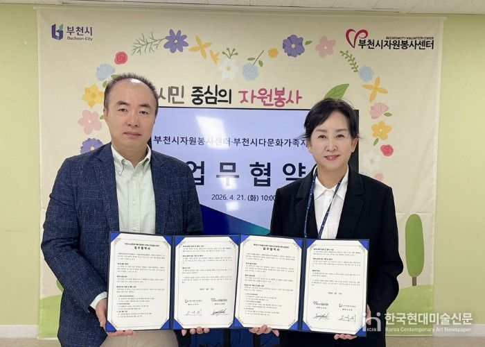 한국현대미술신문 배윤섭 기자 | 부천시다문화가족지원센터는 4월 21일 부천시자원봉사센터와 자원봉사 활성화 및 다문화가족의 지역사회 참여 확대를 위한 업무협약(MOU)을 체결했다고 밝혔다.