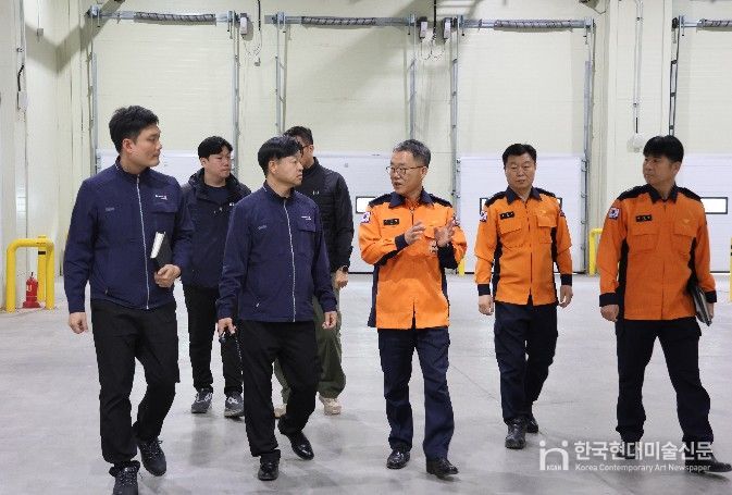 한국현대미술신문 배윤섭 기자 | 파주소방서는 21일 오후 파주시 조리읍 소재 물류(냉동·냉장)창고를 방문해 관서장 현장안전지도를 실시했다. 이번 지도는 지난 4월 12일 전남 완도군 수산물 냉동창고 화재로 소방관 2명이 순직하는 참사가 발생한 직후, 유사 사고의 선제 차단을 위해 마련됐다.