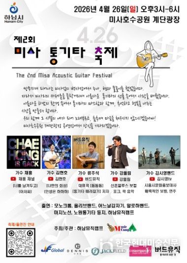 하남뮤직캠프 김남수 대표는 “이번 축제를 통해 시민들이 일상 속에서 음악을 즐기고, 미사의 통기타 문화가 전국 통기타의 중심지로 부상하는 계기가 될 것으로 기대한다”고 전했다.