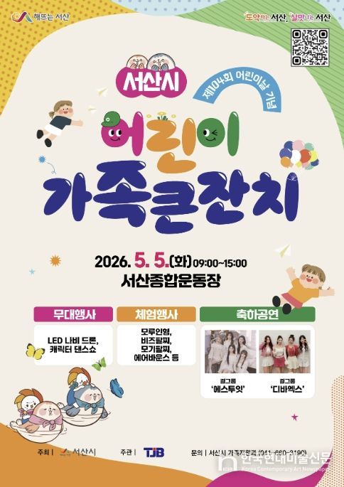 한국현대미술신문 신정은 기자 | 충남 서산시가 제104회 어린이날을 맞아 어린이 가족 큰잔치를 개최한다.
