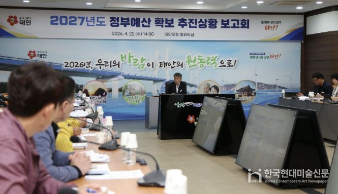 한국현대미술신문 신정은 기자 | 태안군이 22일 군청 중회의실에서 이주영 부군수와 각 부서장 등 30여 명이 참석한 가운데 ‘2027년도 정부예산 확보 추진 상황 보고회’를 열고 부처 예산안 반영 현황을 점검하며 세부 대응 전략 논의에 나섰다.