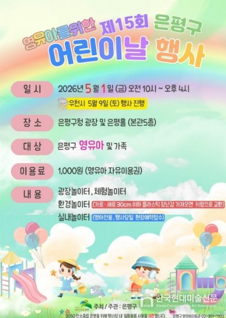 한국현대미술신문 배건 기자 | 서울 은평구는 어린이날을 맞아 내달 1일 은평구청 광장과 은평홀에서 ‘제15회 영유아를 위한 어린이날 행사’를 개최한다고 밝혔다.