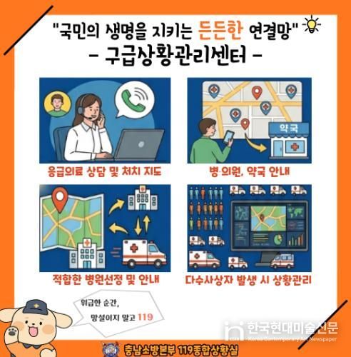 최길재 소방서장은 “응급상황에서는 빠른 판단과 적절한 대응이 무엇보다 중요하다”며“언제 어디서나 이용 가능한 119구급상황관리센터 응급의료상담 서비스를 시민들이 잘 알고 적극 활용해 주시길 바란다”고 전했다.