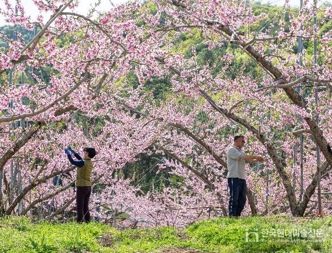 한국현대미술신문 신정은 기자 | 충북 괴산군 청천면 금평리에서 연분홍 복숭아꽃이 활짝 피며 농가에 봄기운을 더하고 있다.
