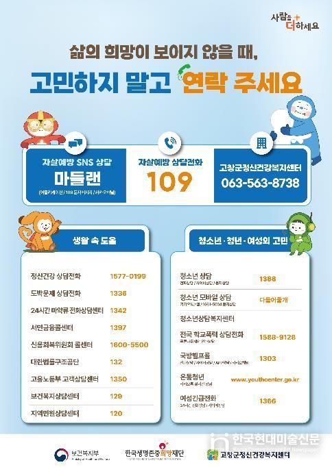 한국현대미술신문 기자 | 자살률이 급증하는 봄철을 대비하여, 고창군이 자살 예방을 위한 집중관리 및 홍보 강화에 나선다.