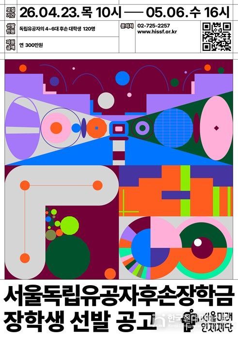 신청은 4월 23일 10시부터 5월 6일 16시까지 재단 누리집을 통해 온라인으로 접수하며, 최종 합격자는 6월 중순 발표할 예정이다.