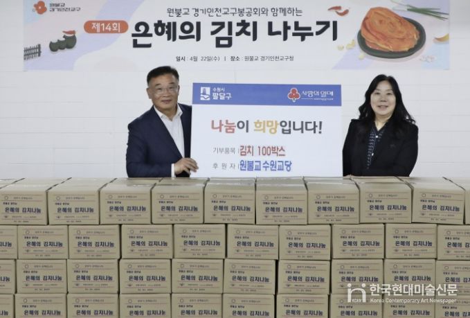 한국현대미술신문 배윤섭 기자 | 수원시 팔달구은 원불교 수원교당으로부터 지난 22일, 김치 100박스를 기부받았다고 밝혔다.