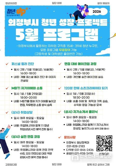 한국현대미술신문 배윤섭 기자 | 의정부시는 미취업 청년의 취업 준비 역량 강화를 위해 ‘청년성장프로젝트’ 5월 프로그램을 운영한다.