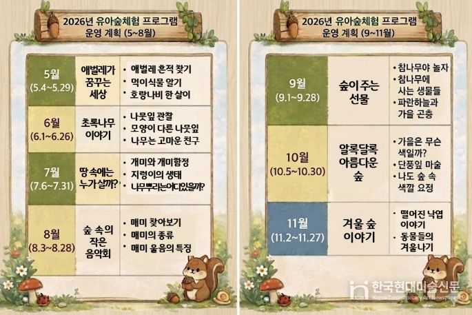 한편, 유아숲체험원 프로그램은 4월부터 11월까지 운영되며 성주산 둥지(소사), 원미산 산울림(원미), 은데미(오정) 등 3개 유아숲체험원에서 진행된다. 회당 20명 이내 소규모로 운영해 안전성과 체험 집중도를 높이며 운영시간은 오전 9시 30분부터 11시 30분까지 2시간, 참가비는 무료다.