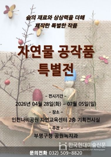 한국현대미술신문 박재남 기자 | 부평구는 부평숲 인천나비공원에서 오는 28일부터 ‘자연물 공작품 특별전’을 개최한다고 밝혔다.