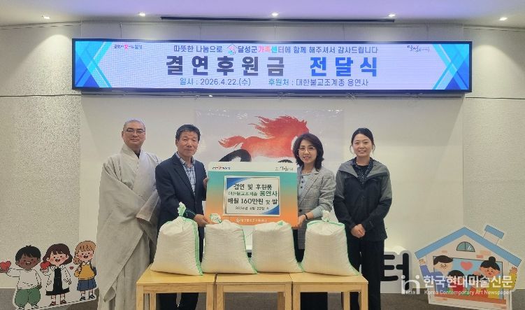 한국현대미술신문 정소영 기자 | 달성군가족센터(센터장 방승희)는 지난 22일 센터 내에서 대한불교조계종 용연사(주지 능도 스님)와 함께 ‘취약·위기 다문화가정 결연금 전달식’을 가졌다고 밝혔다. 이번 사업은 경제적 고통과 위기 상황에 놓인 관내 저소득 다문화 8가구를 돕기 위해 기획됐다.