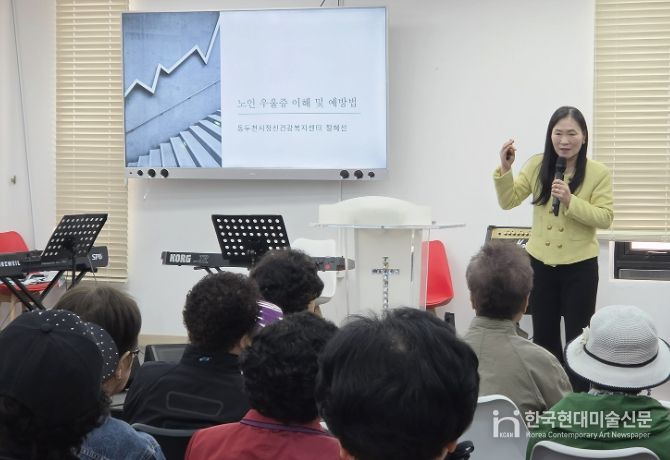 한국현대미술신문 배윤섭 기자 | 동두천시정신건강복지센터는 지난 22일 동두천성결교회에서 어르신 40여 명을 대상으로 성인 정신건강교육 ‘노인 우울증 이해 및 예방법’을 실시했다.