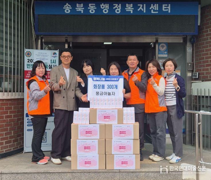 한국현대미술신문 배윤섭 기자 | 풍금아놀자는 지난 22일 화장품 300개를 평택시 송북동 행정복지센터에 전달했으며, 기부된 화장품은 송북동 내 취약계층 가구에 전달될 예정이다.
