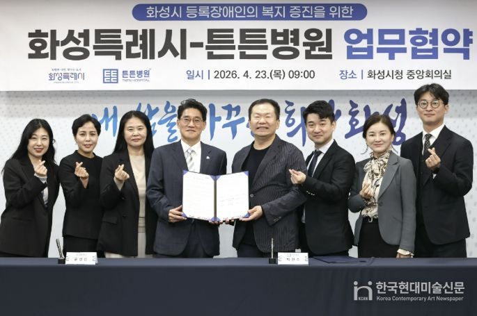 한국현대미술신문 배윤섭 기자 | 화성특례시는 23일 본관 2층 중앙회의실에서 튼튼병원과 화성시 등록장애인의 건강한 생활 지원과 삶의 질 향상을 위한 업무협약을 체결했다.