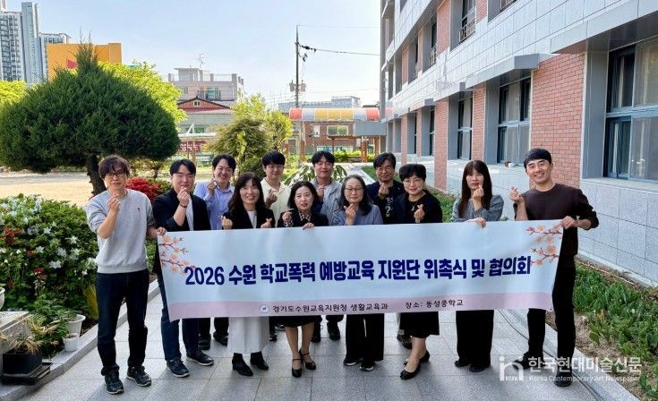 한국현대미술신문 배윤섭 기자 | 수원교육지원청은 4월 22일, 23일 양일간‘2026 학교폭력예방 지원단 및 학교폭력 사안처리 현장지원단 위촉식 및 협의회’를 개최했다. 총 23명의 지원단이 위촉장을 받고, 학교폭력 예방 및 학교폭력 사안 처리 대응 체계 구축을 위해 머리를 맞댔다.