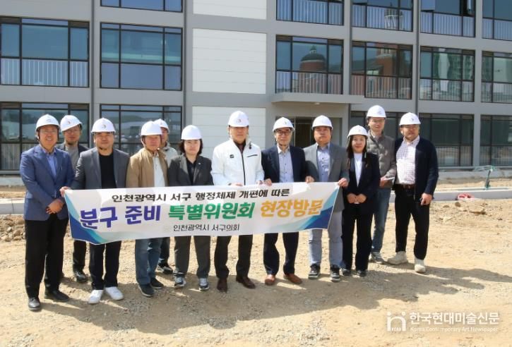 한국현대미술신문 박재남 기자 | 인천 서구의회 '행정체제 개편에 따른 분구추진 특별위원회'는 23일, 검단구 출범을 대비해 조성 중인 검단구 임시청사(서구 당하동 1325 일원)를 방문하여 시설 현황과 행정 준비 상황을 점검했다.