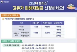 민생안정지원금 2차는 4월 27일부터 5월 22일까지, 고유가 피해지원금 1차는 4월 27일부터 5월 8일까지 각각 신청·접수할 예정이며, 군은 군민들이 신청 기간을 놓치지 않도록 지속적인 홍보와 안내를 이어갈 계획이다.