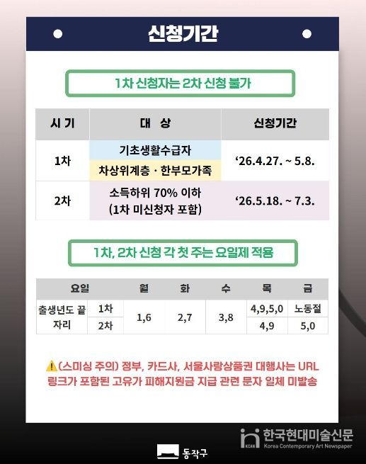 한국현대미술신문 배건 기자 | 동작구가 고유가·고환율·고물가로 인한 주민들의 경제적 부담을 완화하기 위해 고유가 피해지원금, 에너지 바우처 등 민생 안정 대책을 추진한다고 밝혔다.