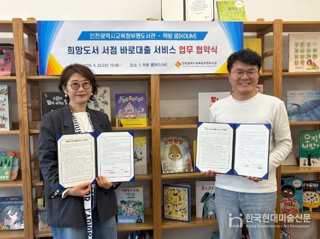 한국현대미술신문 박재남 기자 | 인천광역시교육청부평도서관은 지난 22일 '책방 쿰'과 ‘희망도서 서점 바로대출 서비스’ 업무협약을 체결했다.
