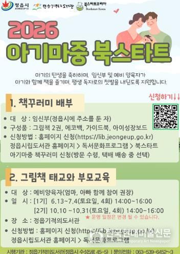 한국현대미술신문 기자 | 정읍시가 태교 단계부터 책과 함께하는 육아 문화를 조성하기 위해 ‘임신부 아기마중 북스타트 사업’을 신규 운영한다.