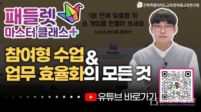 한국현대미술신문 기자 | 전북특별자치도교육청미래교육연구원이 교원의 인공지능(AI)·디지털 수업역량 강화와 수업 연구 전문성 신장을 위해 맞춤형 동영상 강의 자료를 제작, 보급한다.
