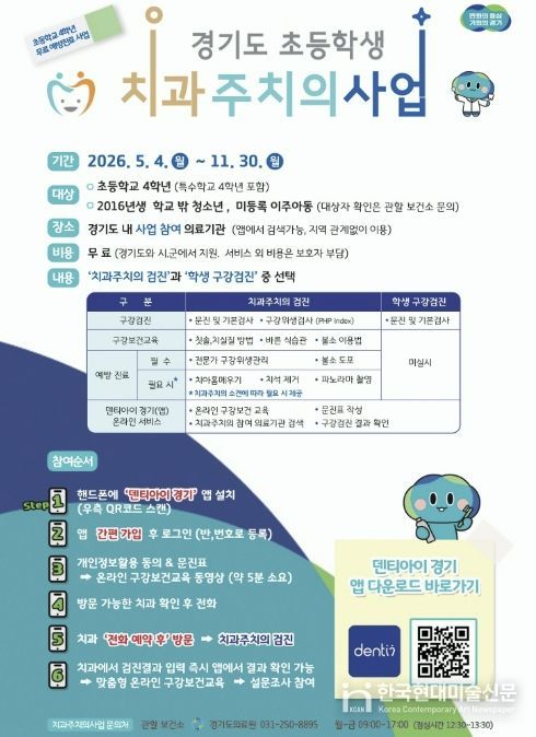 한국현대미술신문 배윤섭 기자 | 포천시보건소는 지역 내 아동의 구강건강 관리를 강화하기 위해 오는 5월 4일부터 11월 30일까지 ‘초등학생 치과주치의사업’을 추진한다.