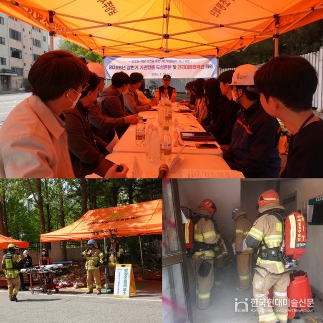 한국현대미술신문 배윤섭 기자 | 남양주소방서는 지난 22일 금곡동 재개발 아파트 일원에서 ‘2026년 상반기 기관합동 도상훈련 및 긴급대응협력관 회의’를 실시하고, ‘지하층 화재진압 및 인명구조 특별구조훈련’을 병행 추진했다고 밝혔다.