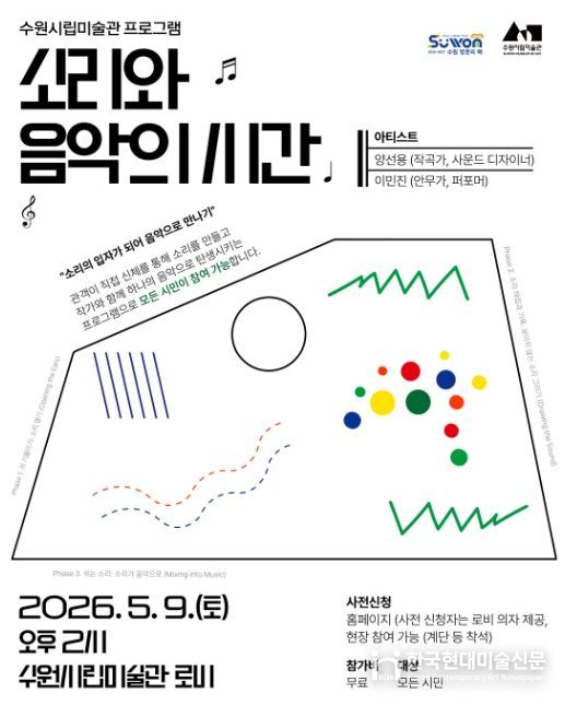 한국현대미술신문 배윤섭 기자 | 경기도 수원시립미술관은 을 맞아 소리를 주제로 한 음악 프로그램 '소리와 음악의 시간'을 5월 9일 개최하며 참여자를 모집한다.