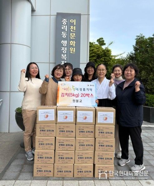 한국현대미술신문 배윤섭 기자 | 이천시 중리동행정복지센터는 원불교가 지역 내 어려운 이웃들을 위해 김치(5kg) 20박스를 기탁하며 따뜻한 나눔을 실천했다고 밝혔다. 이번 기탁은 경제적 어려움과 돌봄 공백 등으로 일상생활에 어려움을 겪고 있는 취약계층 이웃들에게 조금이나마 힘이 되고자 마련됐다.