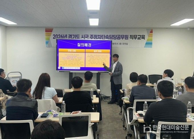 한국현대미술신문 배윤섭 기자 | 이천시는 4월 23일, 24일 양일간 차량등록과 2층 회의실에서 경기도 11개 시군 주정차단속담당공무원 50명을 대상으로 도로교통법 및 주정차단속실무에 관한 직무교육을 실시했다고 밝혔다.