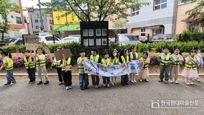 한국현대미술신문 배윤섭 기자 | 달봄유치원은 4월 22일 지구의 날, 7세 유아들이 한 달 동안 환경을 주제로 다양한 놀이와 체험 활동을 이어오며 지구의 소중함을 배우는 뜻깊은 시간을 가졌다. 이번 활동은 지구의 날을 맞아 진행된 환경캠페인의 일환으로, 아이들은 놀이 속에서 자연스럽게 환경 보호의 의미를 익히고 실천으로 이어갔다.