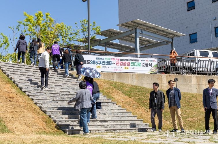 한국현대미술신문 배건 기자 | 마포구는 마포365구민센터와 한강공원을 연결하는 녹색 보행로인 ‘잔디로’를 조성하고 4월 24일 오전 준공식을 개최했다.