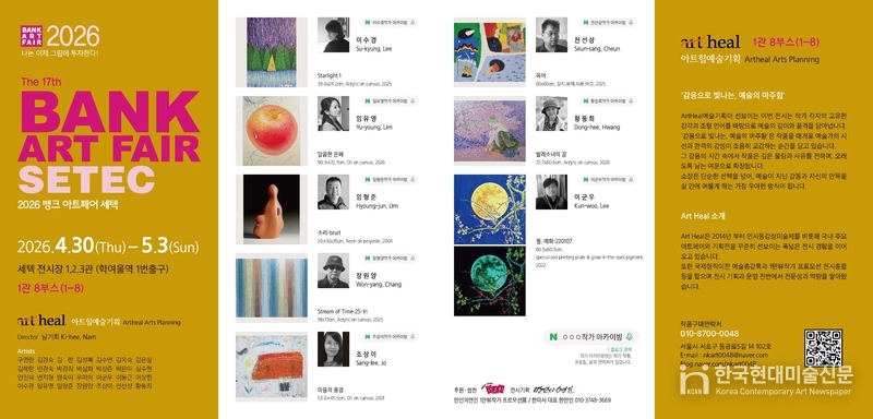 아트힐예술기획(디렉터 남기희)이 오는 4월 30일부터 5월 3일까지 서울 학여울역 세텍(SETEC) 전시장에서 개최되는 ‘2026 뱅크아트페어 세텍(BANK ART FAIR SETEC)’에 참가해 현대미술의 정수를 선보인다.