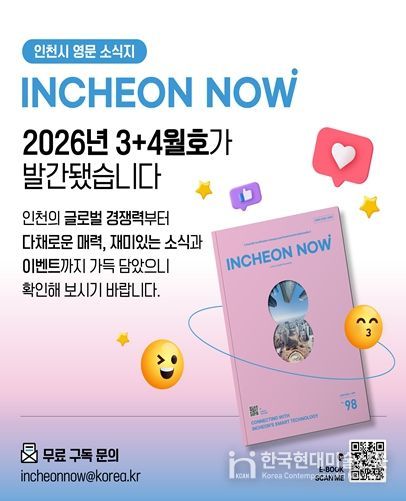 한국현대미술신문 박재남 기자 | 인천광역시는 도시의 혁신적인 정책과 차별화된 매력을 전 세계에 소개하는 영문소식지 '인천나우(Incheon Now)' 3·4월호(Vol. 98)를 발간했다고 밝혔다.
