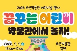 한국현대미술신문 정소영 기자 | 부산시립박물관은 2026년 어린이날을 맞이하여 다양한 문화 활동을 즐길 수 있는 '꿈꾸는 어린이, 박물관에서 놀자!'를 개최한다고 밝혔다.