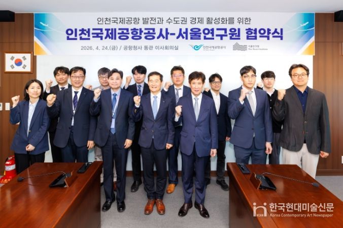 한국현대미술신문 박재남 기자 | 인천국제공항공사는 지난 24일 청사 회의실에서 서울연구원과 ‘상호협력 및 연구 네트워크 강화를 위한 업무협약’을 체결했다고 26일 밝혔다.